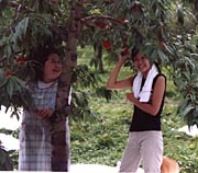 平成15年8/18〜21 神奈川県 O.麻美 私は農学部の1年生なので、大学で農家訪問の宿題が出ました。そして友達と一緒に、ここでファームスティさせてもらうことになりました。 ここに来る前まで、作物を作る技術さえあれば、農業は成り立つと思っていました。しかし、いろいろな話をしていただき、もっと多くのことが必要で、奥が深いことを知り、驚きました。新しい果物を作るとき、どの品種がどういう時代に誰にどのくらい売れるのか、そういうことを考えて品種を選ぶのは、とても面白そうだとも思いました。 夜、ここの農業について色々と質問させてもらった。全ての質問にていねいに答えてくださり、ありがとうございました。みんなの熱意がすごくよく伝わってきました。「常に農業の最先端にいたい」という言葉に感動しました。私も将来、農業ではないけれど、自分の仕事の分野の最先端にいきたいと思いました。 ファームスティの間、雨ばっかりで畑での作業があまりできなかったのは残念だったけれど、ひとりじめやブラックベリージャム作りはとても楽しかったです。加工も農業にとって必要な柱の一つなんだと教わりました。初めて農場に行ったときに、してくださった木の話≠ヘとてもおもしろかったし、色々考えさせられた。今もっと多くの木を見たい、と思っています。そうすれば何か考え方や職業選択や、色々なことに役立つと思いました。 短い間でしたけど、親切にしていただき、本当にありがとうございました。大勢で食べたギョウザおいしかったです。お体に気をつけて、これからもおいしいくだものをいっぱい作ってください。 |