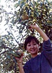 | ラフランスの収獲は本当に時間があっという間でした。青空にむかって手を伸ばしてもぎとるのは気持ちがいいです。脚立にのぼって高い所から畑を見渡すのも気持ちがいいです。でも、途中から景色を見る余裕もなくひたすらラフランスを目で追っていました。写真を何枚か取ってもらいましたが、あんなにまっすぐカメラを見れる事はあまりなく、いつも写真は緊張してしまいますが今日は心が開けた気分でした。